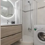 The apartment is equipped with a bathroom that features a hair dryer.